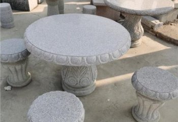 精美大理石浮雕圓形戶外休閑石桌石凳