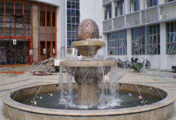 經典中式風水球,黃銹巖浮雕噴泉水