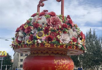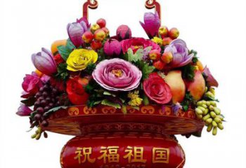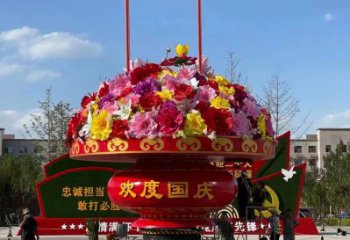 玻璃鋼彩繪普天同慶萬眾一心大花籃雕塑