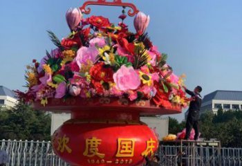 天安門廣場精美玻璃鋼彩繪大花籃雕塑