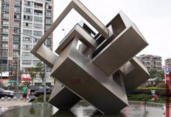 藝術(shù)創(chuàng)意幾何魔方不銹鋼擺放雕塑——精致裝點(diǎn)小區(qū)廣場(chǎng)水池噴泉