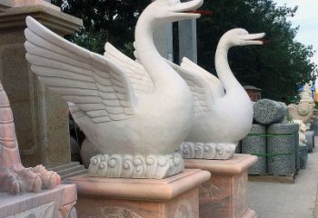漢白玉雕刻天鵝寺廟創意鳴叫裝飾雕塑