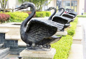 仿銅噴水雕塑,玻璃鋼景觀天鵝水池,為廣場園林擺放