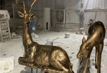 玻璃鋼仿銅小鹿擺件,戶(hù)外草坪動(dòng)物模型