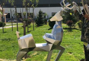 梅花鹿不銹鋼雕塑精美的幾何草坪裝飾