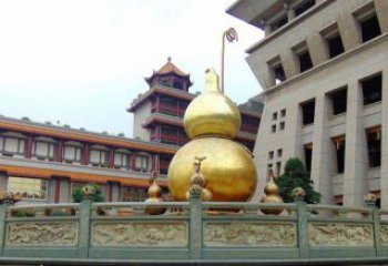 夏日的溫暖,空氣中充滿著清新的空氣,每一個角落都充滿著芬芳。突然,一個古老而優雅的庭院出現在眼前,那里有著精美的銅雕,特別是那只葫蘆,洋溢著古典的氣息,令人驚嘆。