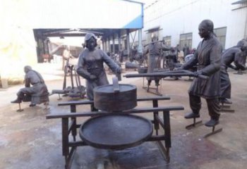 玻璃鋼仿銅農耕文化情景人物小品雕塑