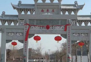裝飾新村莊單門牌坊,青石鏤空浮雕精美