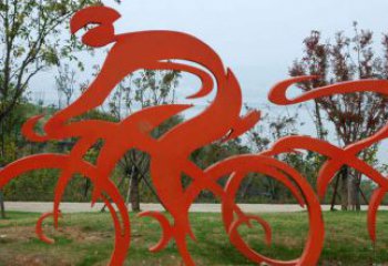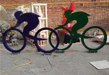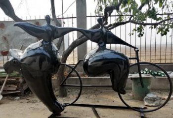 大型抽象不銹鋼仿銅人物騎自行車雕塑