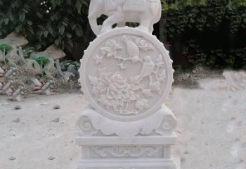 精致漢白玉浮雕麒麟抱鼓石門墩