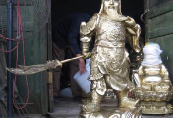 手工鑄銅噴金雕刻武財(cái)神關(guān)公雕塑