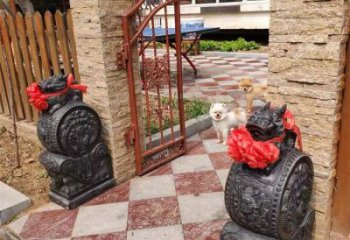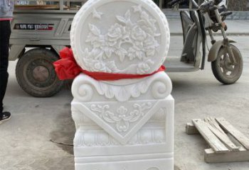 經典漢白玉浮雕庭院中式大門抱鼓擺件
