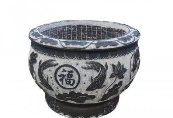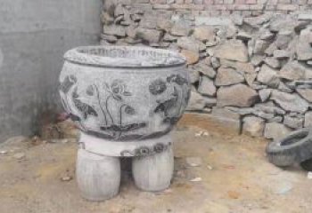仿古石雕荷花青石魚缸,為您的戶外擺放福字