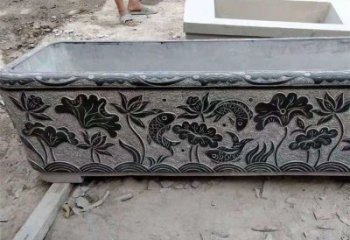 青石石雕景觀長方形魚缸雕塑