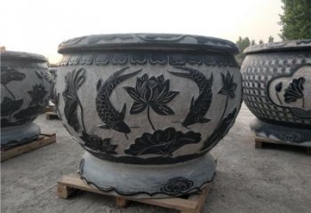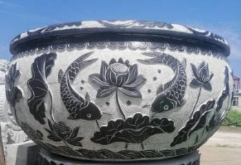 仿古庭院荷花鯉魚浮雕石雕缸雕塑