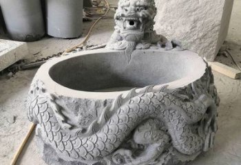 仿古石缸水缸青石龍形浮雕雕塑,為您的庭院增添一抹古樸