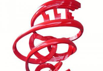 環(huán)繞公園的紅色玻璃鋼噴漆飄帶雕塑
