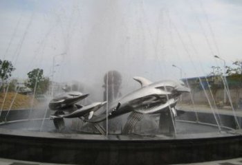 不銹鋼海豚雕塑,裝飾現(xiàn)代廣場的水景