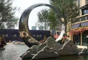 不銹鋼水景圓環(huán)雕塑——售樓部精致創(chuàng)意鏡面裝飾