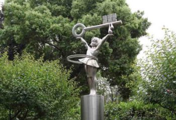 校園舉鑰匙不銹鋼雕塑小女孩