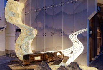 《絲路舟行》石雕與不銹鋼結(jié)合景觀雕塑