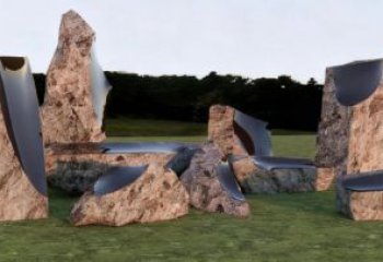《石語?鏡界》石雕與鏡面不銹鋼結(jié)合景觀雕塑