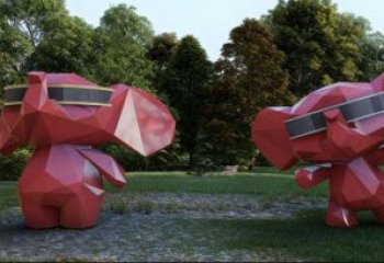 林間趣遇:不銹鋼卡通紅象的景觀歡樂劇場