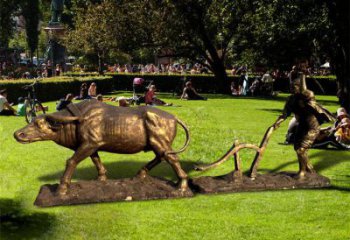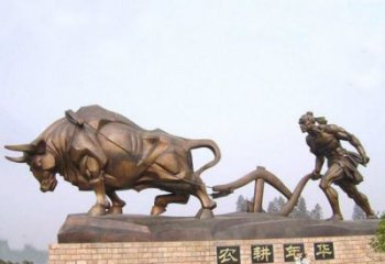 大型銅仿玻璃鋼農耕文化犁地雕塑