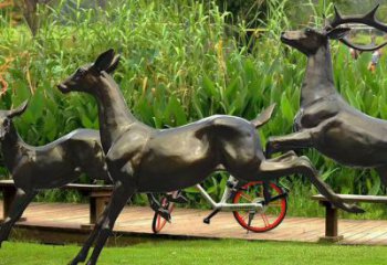 仿銅玻璃鋼戶外園林景觀鹿雕