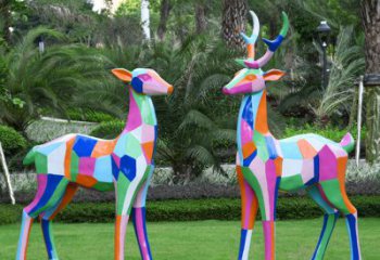玻璃鋼幾何雕鹿裝飾品——景觀戶外裝飾彩繪公園藝術品