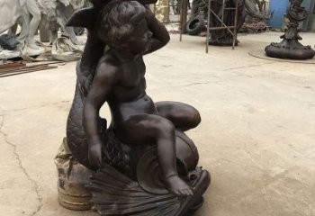 海濱景觀玻璃鋼仿銅捕魚裝魚雕塑