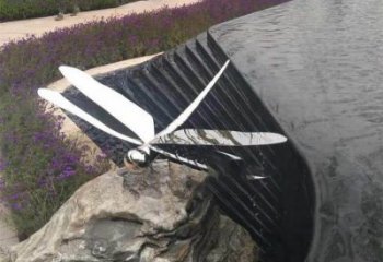 大型不銹鋼鏡面蜻蜓水景觀雕塑擺件
