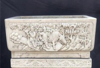 石雕青石水槽魚戲蓮葉絢爛