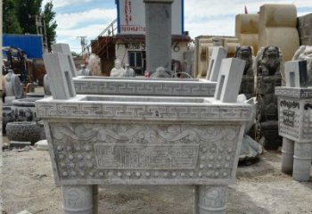 大理石石雕香爐擺件,古樸寺廟風情景觀