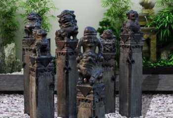 黑色仿古石雕拴馬樁柱子,大小可定制