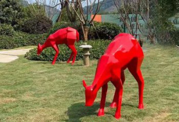 玻璃鋼制紅色梅花鹿雕塑,裝點別墅小區(qū)精致美觀