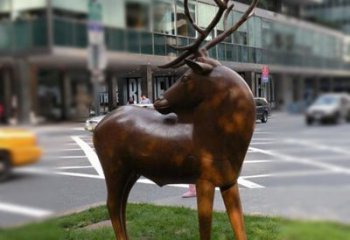 玻璃鋼仿銅色塊面梅花鹿雕塑