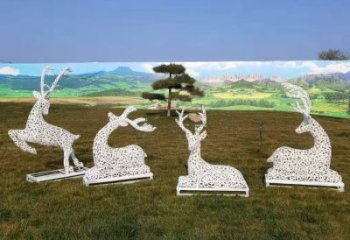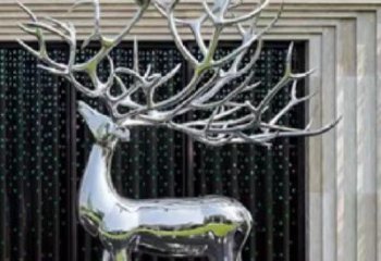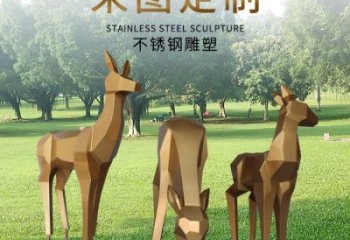 城市中的大型不銹鋼幾何梅花鹿雕塑