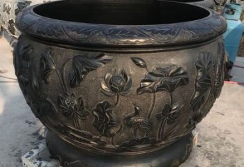 仿古荷花鯉魚浮雕石雕水缸雕塑