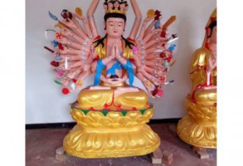 貼金千手觀音雕塑是一種精美裝飾大型寺廟的雕塑,它由貼金和千手觀音雕塑組成,是一種非常珍貴的藝術品。